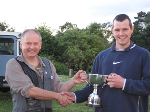 The DTL Cup 2008 took place on consecutive Thursdays, 26th June and 3rd July, and was won by Greg Thomas (pictured left receiving the DTL Cup from club President, Nigel Kavanagh). Greg's score of 142 Ex 150 narrowly beat Richard Thomas (141 Ex 150), who took first place in class A. Class B winner was Peter Dillistone with a score of 95 Ex 150. The overall scores were affected by very wet and windy conditions on the first Thursday.