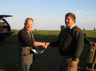 The winner of the High Pheasant Trophy 2008 was Richard Thomas, first place Rob Thomas and second place Bob Barnsley. The pictire left shows Richard Thomas (left) receiving the High Pheasant Trophy from club Chairman, Barry Salt.